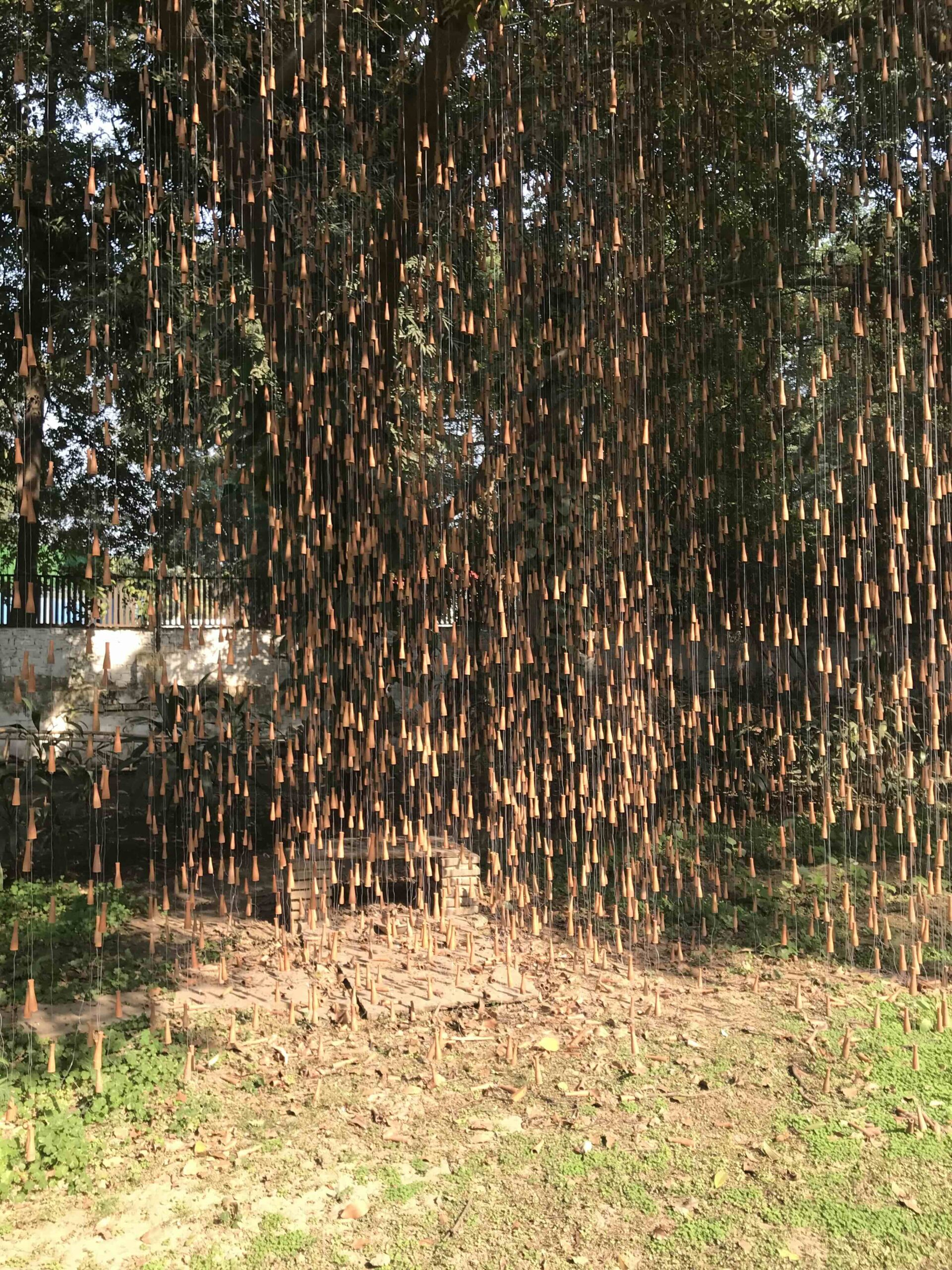 In this movement, earthen lamps (“diyas”), local cigars (“chillam”), earthen cups (“kullhar”), become metaphors and idioms of sustainability, context, perception and treatment of the rivers and waters of lands where the artist’s research and experience together form the story of ‘The River’, the ‘rain’, ‘The Beehive Garden’ and more. Finding new ways of repurposing the traditional to avant garde.