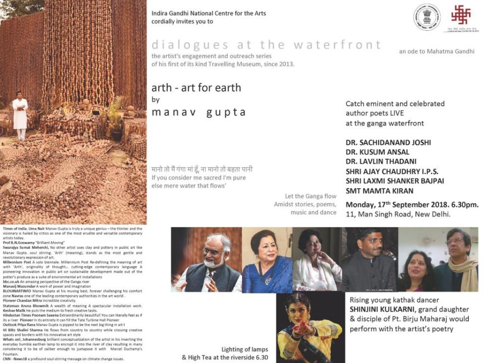 Why clay? “We are clay. Maati. Dust to dust. Hence, clay. I am clay.” Art is about hope. Offering earthen lamps to people in public art, Gupta hopes that people will not discard diyas, which serve as a “conduit of prayer to the sacred”. Clay is a representative of an element. “It represents earth and human,” he says, “we deplete our resources and we are depleting human kind.”There is more to his choice of material. Metaphors. He is unearthing them through simple objects made of clay. “I am scrubbing the soul,” he says. To him, the first realisation of using clay as a drop came from an inverted diya. “There are artists who can create from cerebral thought. For me, it has to be in the heart, the inside. It (clay) kept growing inside.”Watching Gupta’s ‘Waterfront’ for the second time in Delhi (it was displayed first a few years ago), unravels more depth and details in his work. The presence of clay in several strings of diya, chilum and khullhad woven together to form a river and installed at Matighar, involves a layer of meanings. “It is my tribute to Matighar, which translates into an abode of mud, through my work.”The use of the different shapes and sizes of the numerous diya, chilum and khullhad and gharas used in the “waterfront” gives it a sense of flow. The chilum lends it the cascade, diyas the flow, kullhads – the break in the flow – pace and momentum, and pots – the gurgle, hollows and rocks. Gupta is aware of the ripples of emotions the ‘Waterfront’ creates in the viewer. “Maano to Ganga, Na maano to behta paani (it’s all in the perception – of Ganga as Ganga or Ganga as flowing water),” he says.Gupta relies on architecture and nature to produce installation works out of material, which, if not meticulously blended into his philosophy and thought, would mingle in surroundings – as any other mundane clay object meant for use, as dust. In his art work, these objects become more than mere ‘useful’ kiln-burnt pieces of utility.